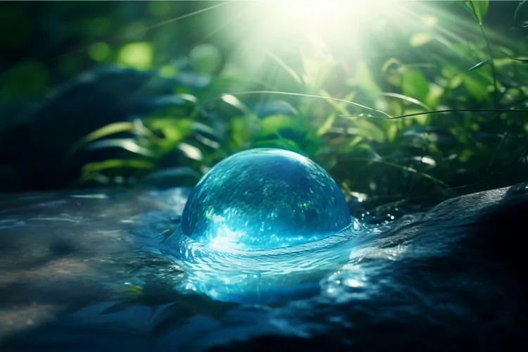 Fantasy water sphere. Extraordinary and enchanting liquid transparent ball. Generate AI