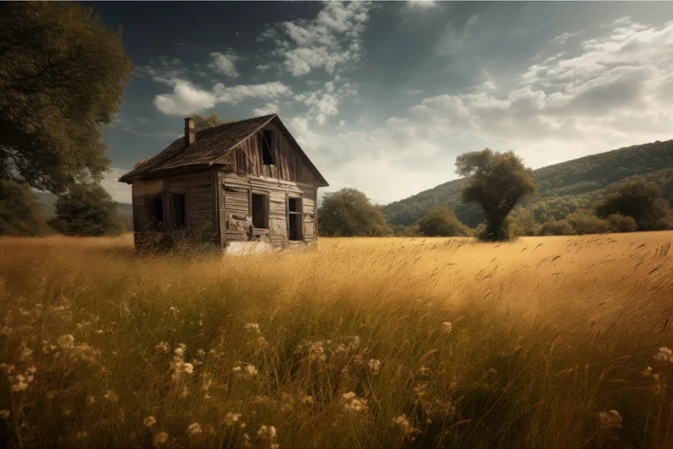 Abandoned house field. Generate AI example image 1