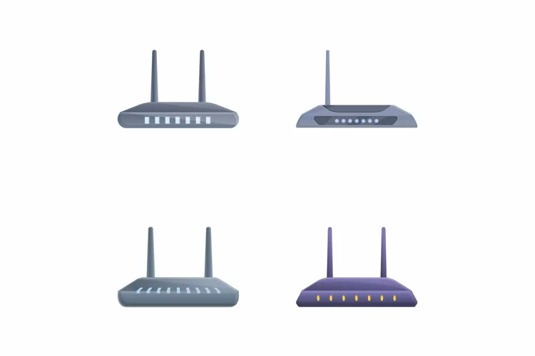Cartoon Vector Icons Set Electronic Device Wireless Wi Router Fi