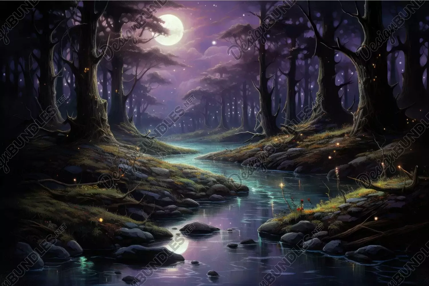 Captivating digital art of a mystical forest by moonlight wi example image 1