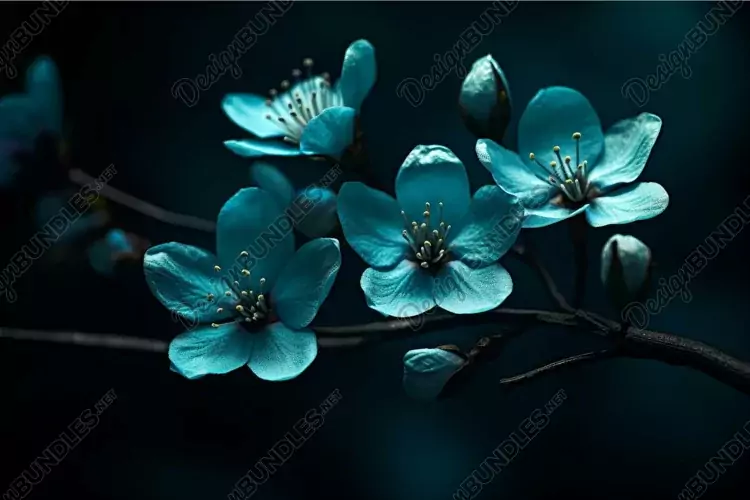 Similar Design Products to Vibrant Teal flowers bush dark. Generate Ai