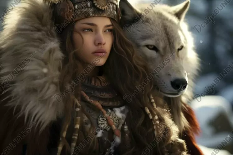 Woman Winter Majestic Wolf Landscape Warrior Female Snowy Fighter Companion