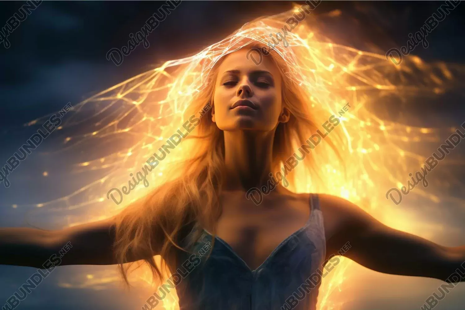 Ethereal woman with fiery light effects