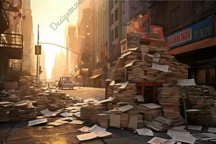 Paper apocalypse: city street overtaken by mountains of pape example image 1