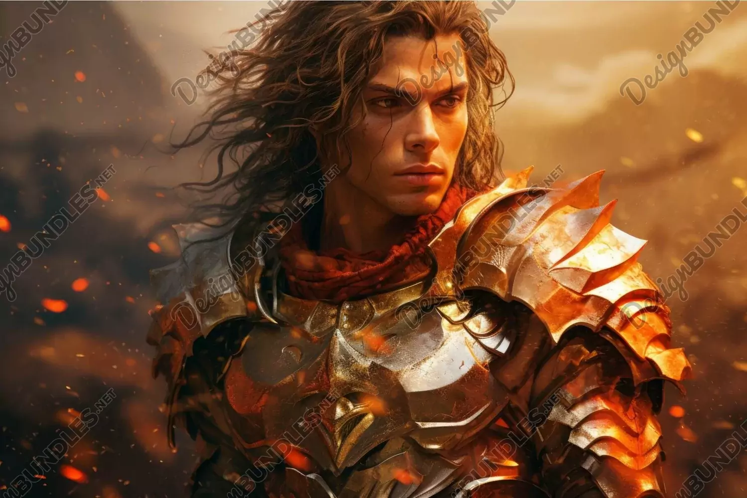 Fantasy Art Medieval Digital Knight Portrait Warrior Fiery Armored Battlefield