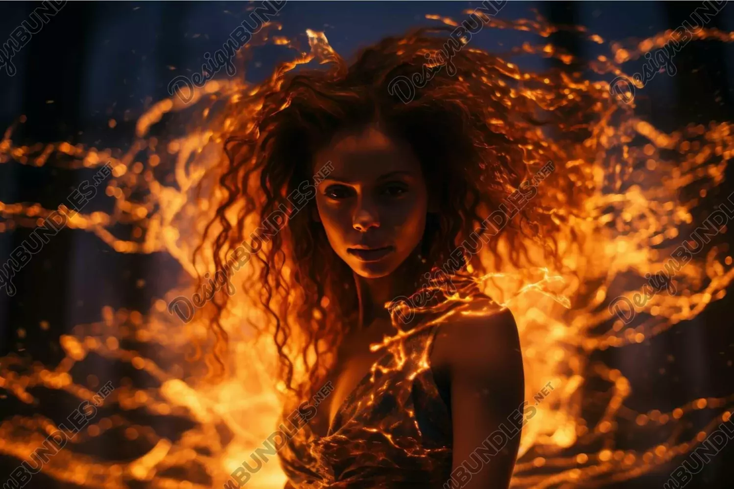 Fiery glow: portrait of a woman with illuminated curls example image 1