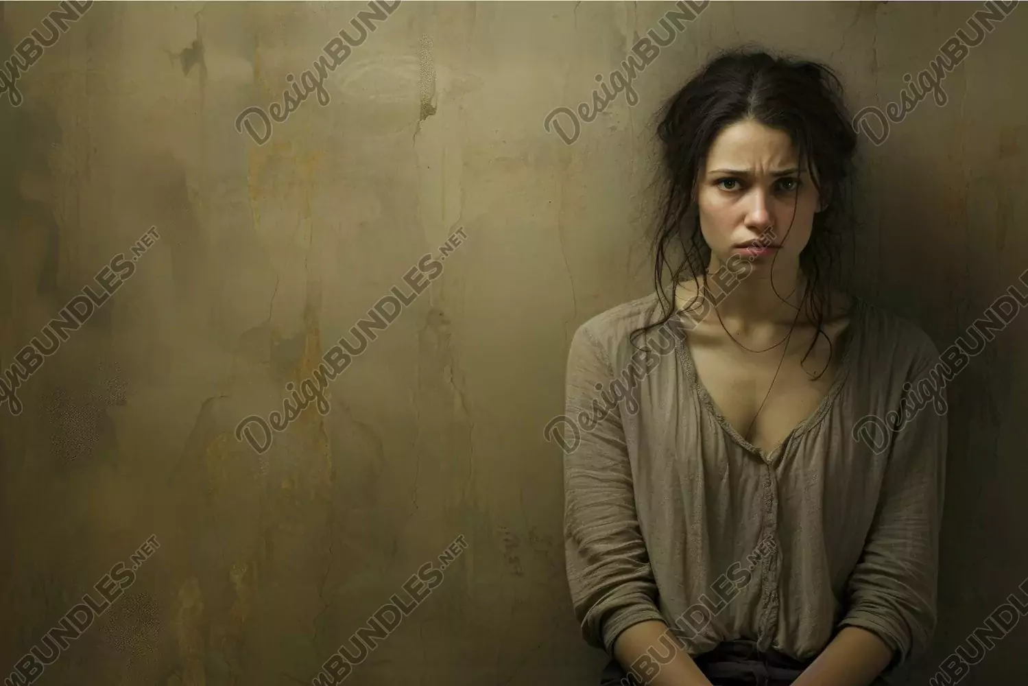 Grunge Textured Woman Young Wall Background Thoughtful Pensive Contemplative Introspection