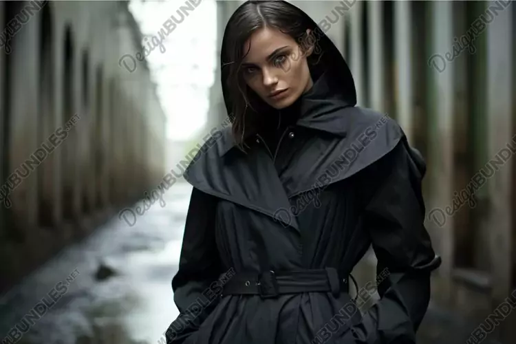 Fashion Black Style Woman Dark Coat Moody Mysterious Alleyway Trench