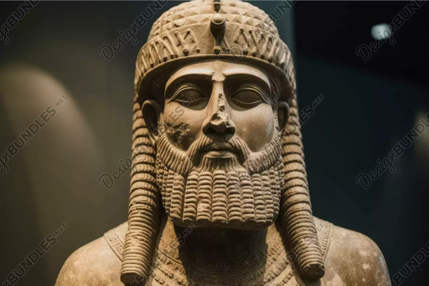 Monumental Sumerian god sculpture. Generate ai example image 1