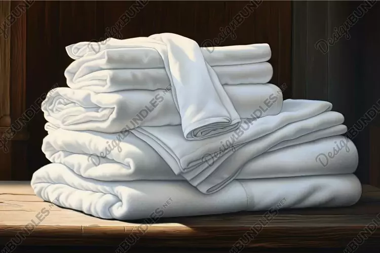 Digital illustration of neatly folded white linens, showcasing a sense of cleanliness and comfort