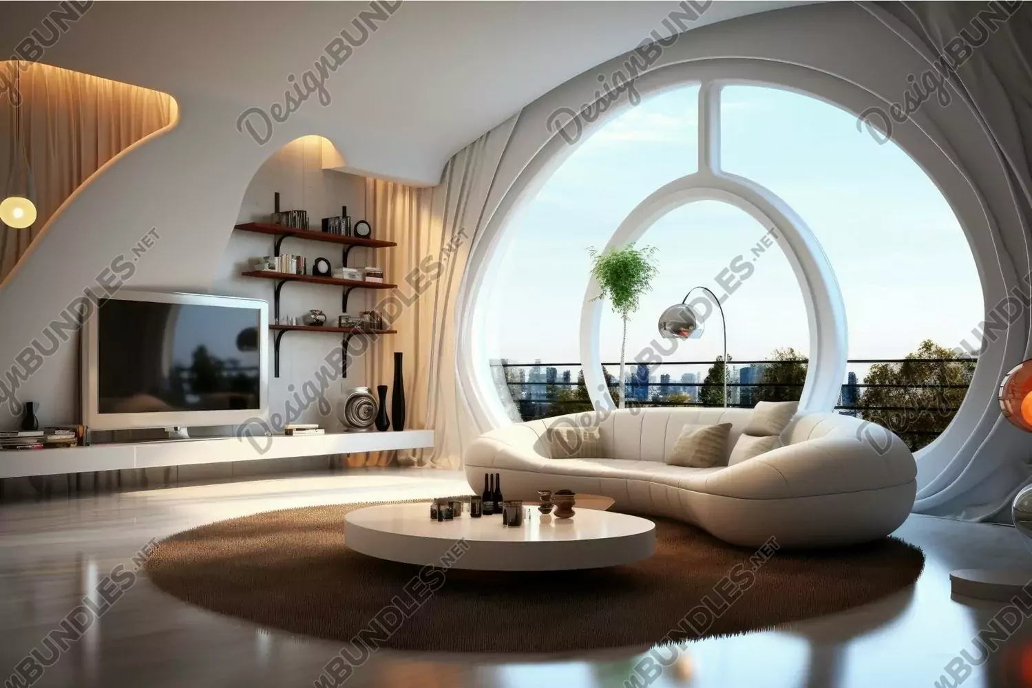 Modern Contemporary Design Interior Furniture Panoramic View Luxurious Living Room