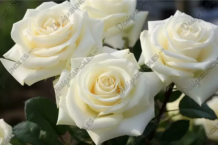 Close-up of elegant white roses in bloom, showcasing their natural beauty