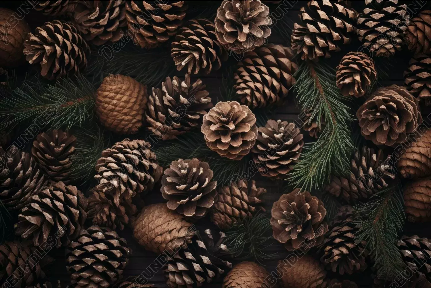 Top view of a variety of pine cones nestled amongst lush fir branches