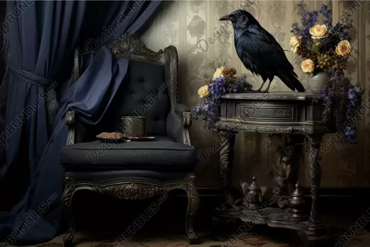 Vintage Classic Gothic Antique Interior Dark Raven Bird Furniture Mysterious