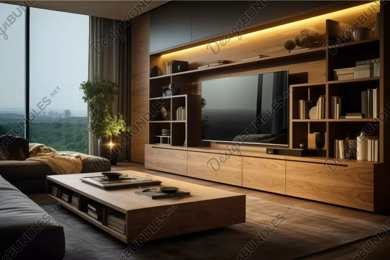 Cozy contemporary living room design with stylish furniture and ambient lighting