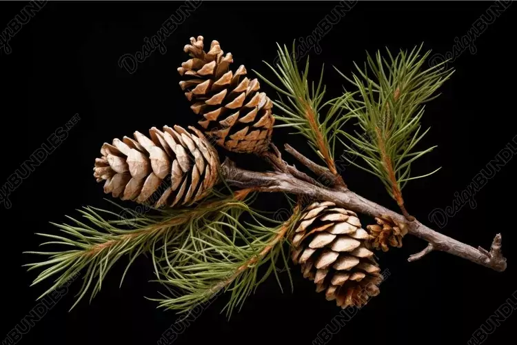 Pine cones and branch over black background example image 1