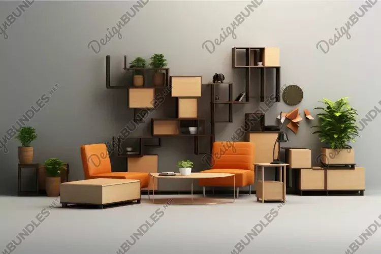 Similar Design Products to Modern living room interior with geometric shelving