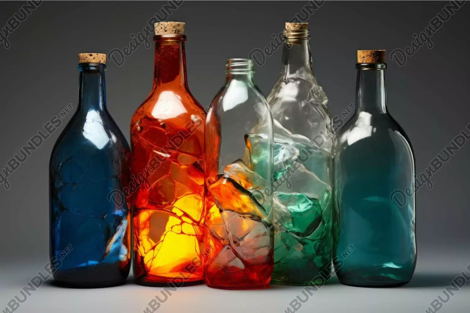Artistic colored glass bottles with illuminated interiors example image 1