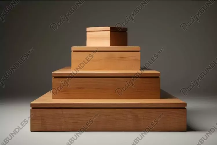 Set of three graduated wooden boxes displayed in ascending order on a soft grey backdrop