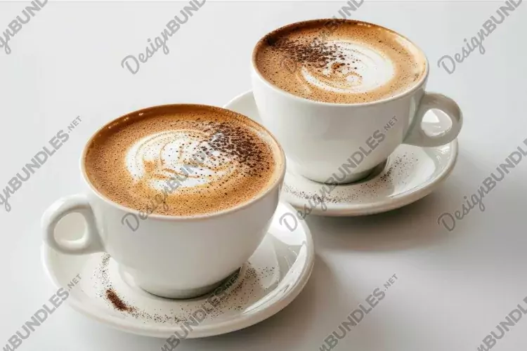 Similar Design Products to Two cups of cappuccino decorated with chocolate on white bac