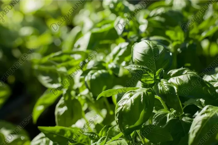 Similar Design Products to Fresh green basil leaves growing in garden sunlight