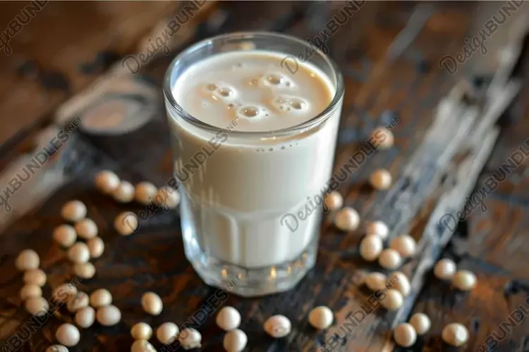 Similar Design Products to Glass of soy milk sitting on rustic wooden table with soybea
