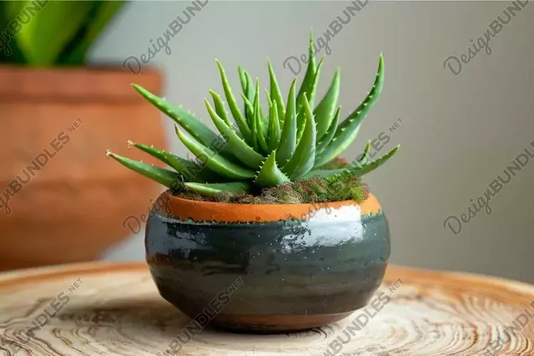 Similar Design Products to Aloe vera plant growing in a round ceramic pot on a wooden t