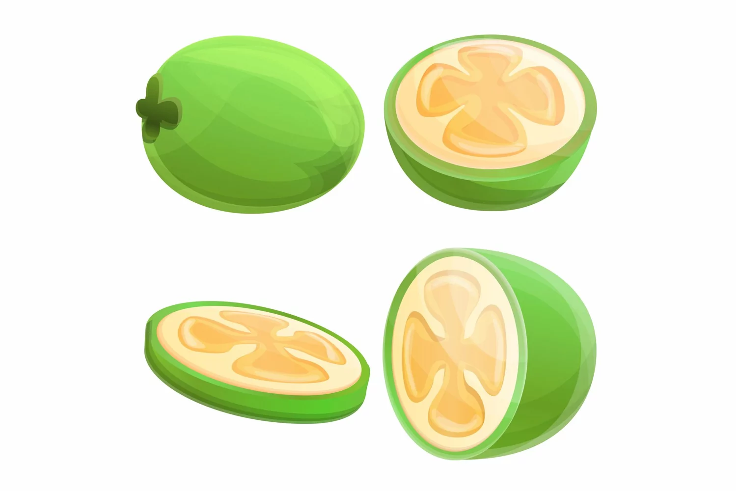 Feijoa icons set, cartoon style