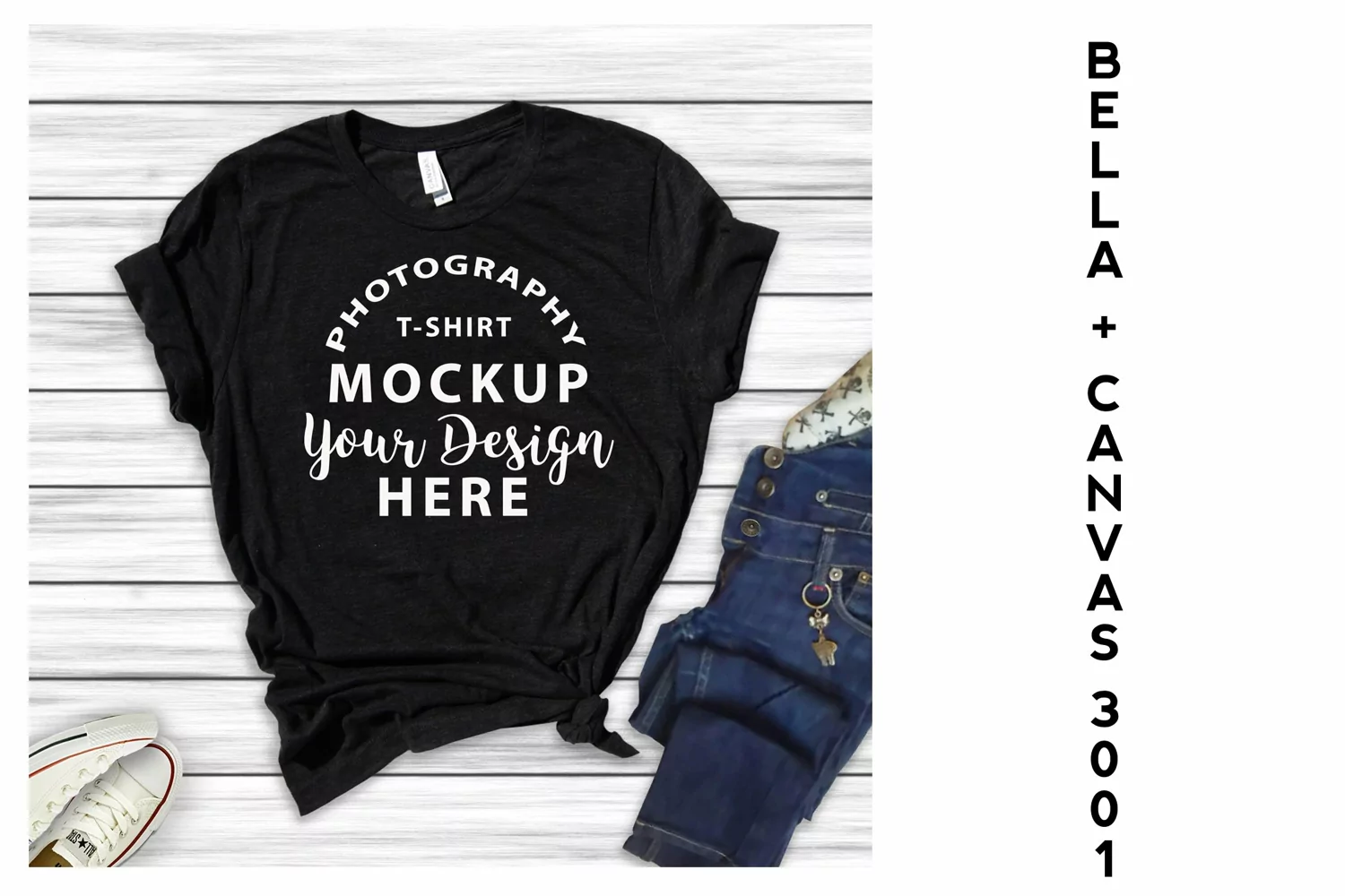 Apparel Mockup T-shirt Mockup Realistic Mockup Flat Lay Mockup Bella Canvas 3001 Black Heather Mockup Wooden Background Mockup