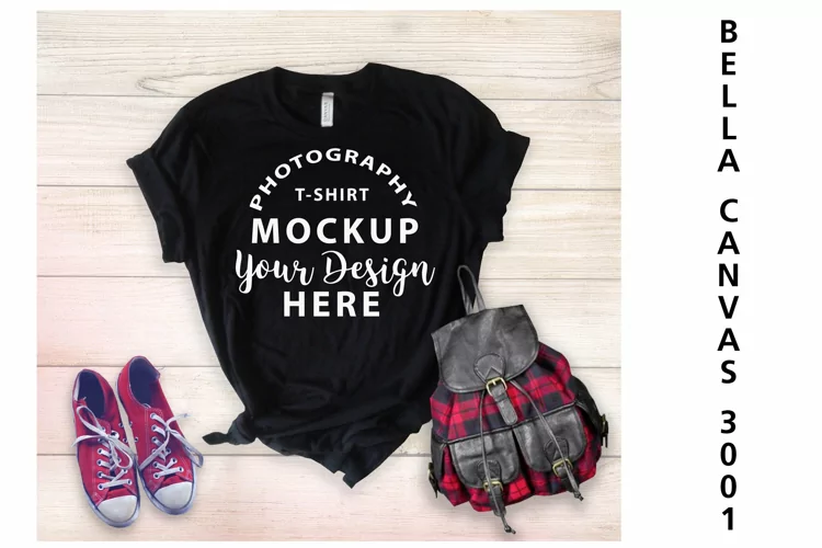 Realistic Photography Mock Up Black Shirt Mockup Flat Lay Mock Up Bella Canvas 3001 Mockup Bella Canvas Black Attractive Mock Up Scene