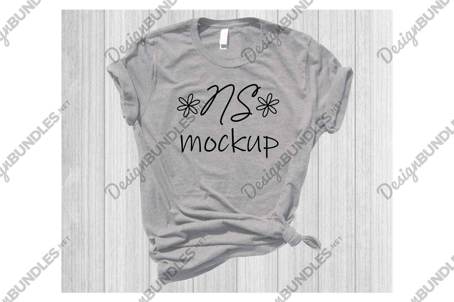 The Bella Canvas 3001 T-Shirt Mockup showcases a premium unisex tee laid flat on a stylish grey wooden background, creating a clean and modern aesthetic.