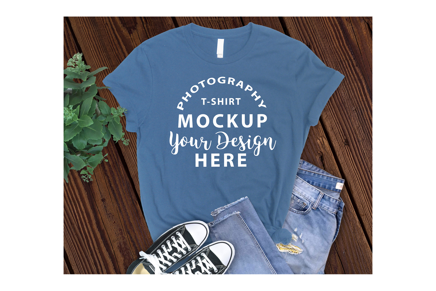 BELLA CANVAS 3001 T-shirt Mockup STEEL BLUE example image 1
