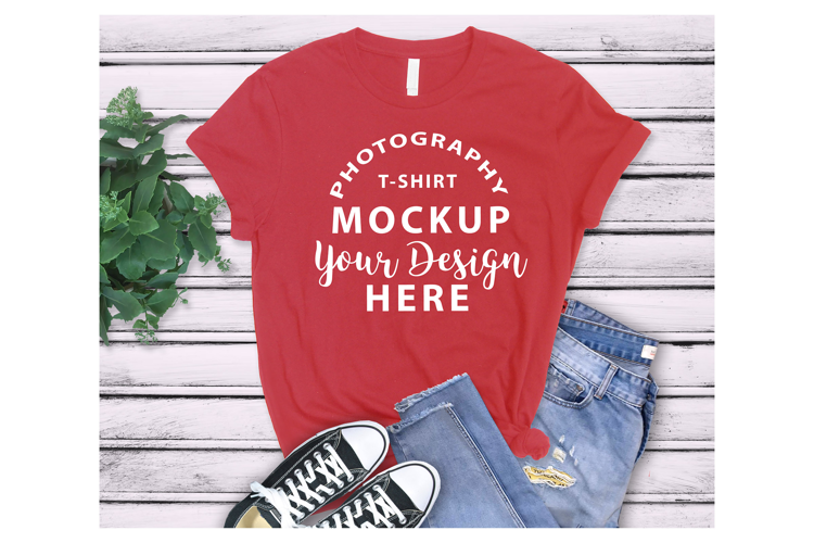 Bella Canvas 3001 Tshirt Mockup RED example image 1