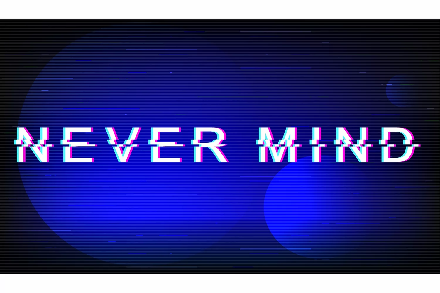 Never mind glitch phrase. Retro futuristic style vector typography on dark blue background. Dont care text with distortion TV screen effect. Trendy message banner design with quote
