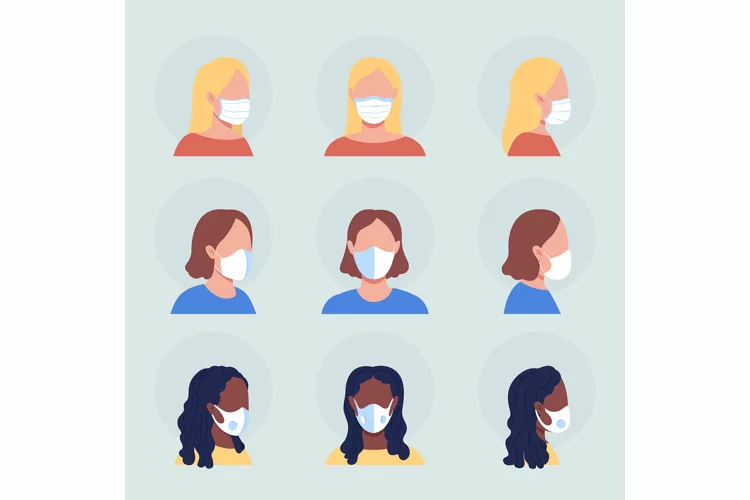 Mask Respirator Facial Pandemic Coronavirus Covid Avatar Set Flat Color Vector Faceless Character 2d Cartoon Illustration