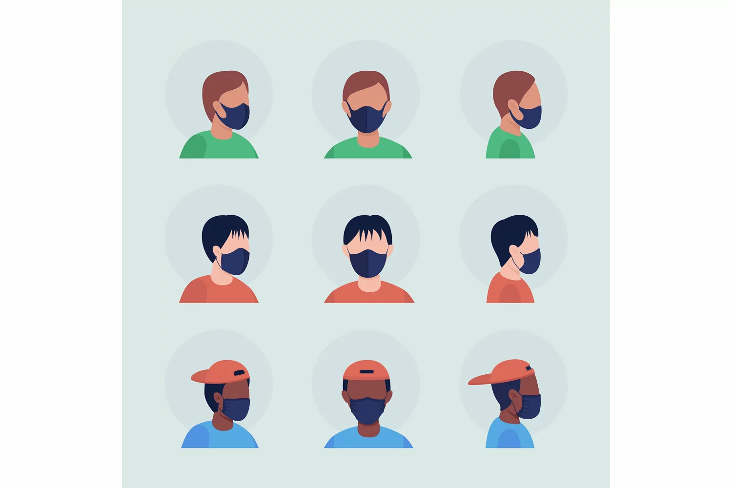 Similar Design Products to Boys with black masks flat vector character avatar set