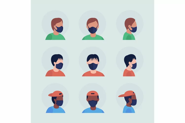 Portrait Facial Mask Multinational Coronavirus Covid Medical Respirator Avatar Set Flat Color Vector Faceless Character 2d Cartoon Illustration