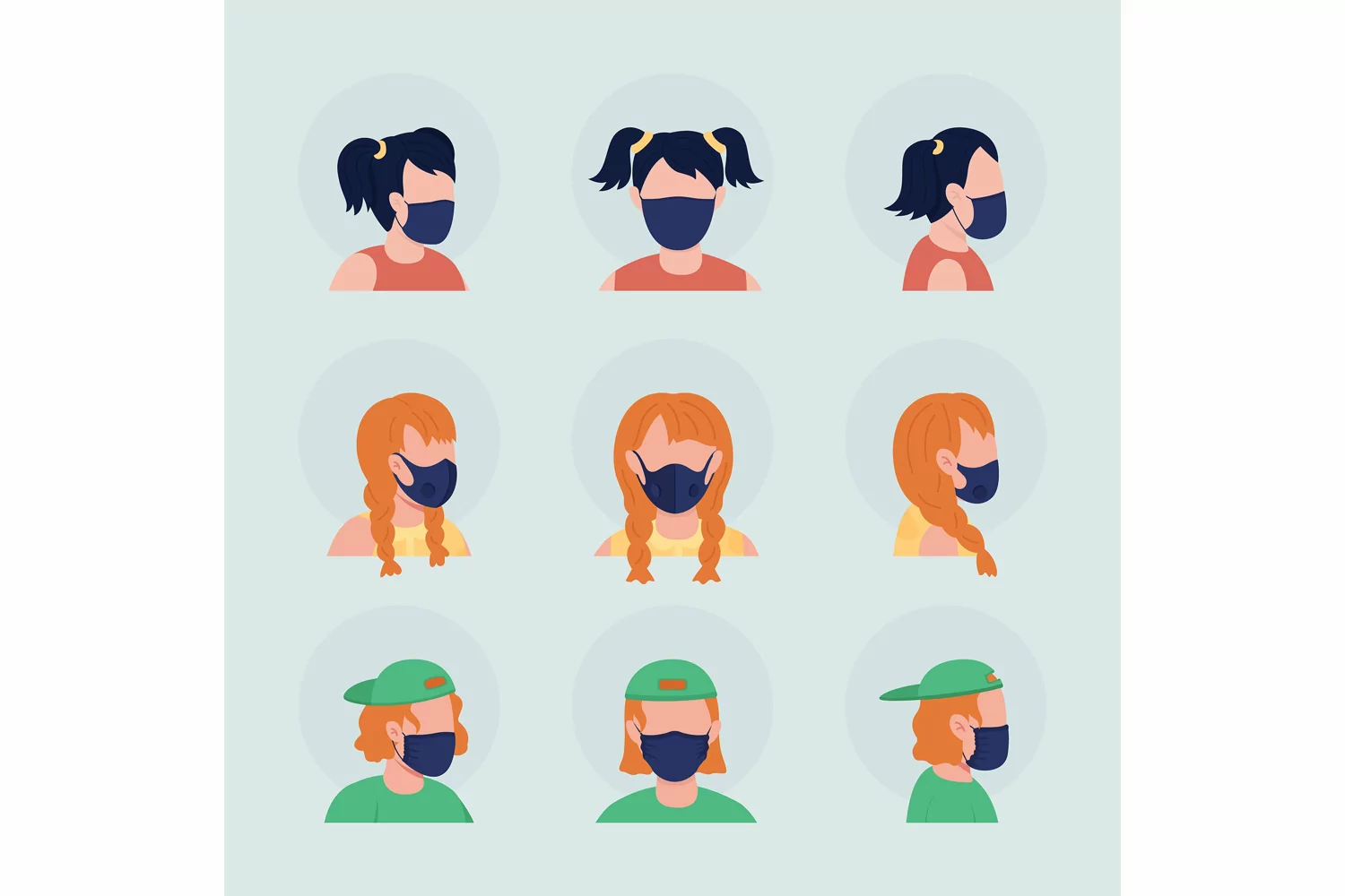 Teens with black masks flat vector character avatar set example image 1