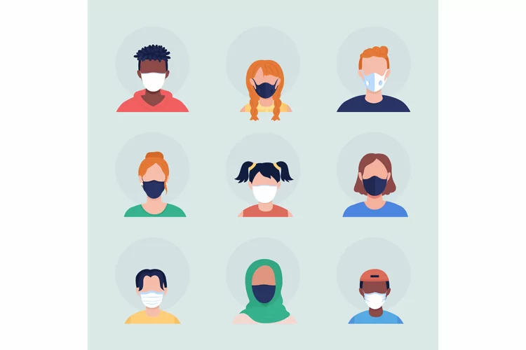 Disposable medical masks flat vector character avatar set