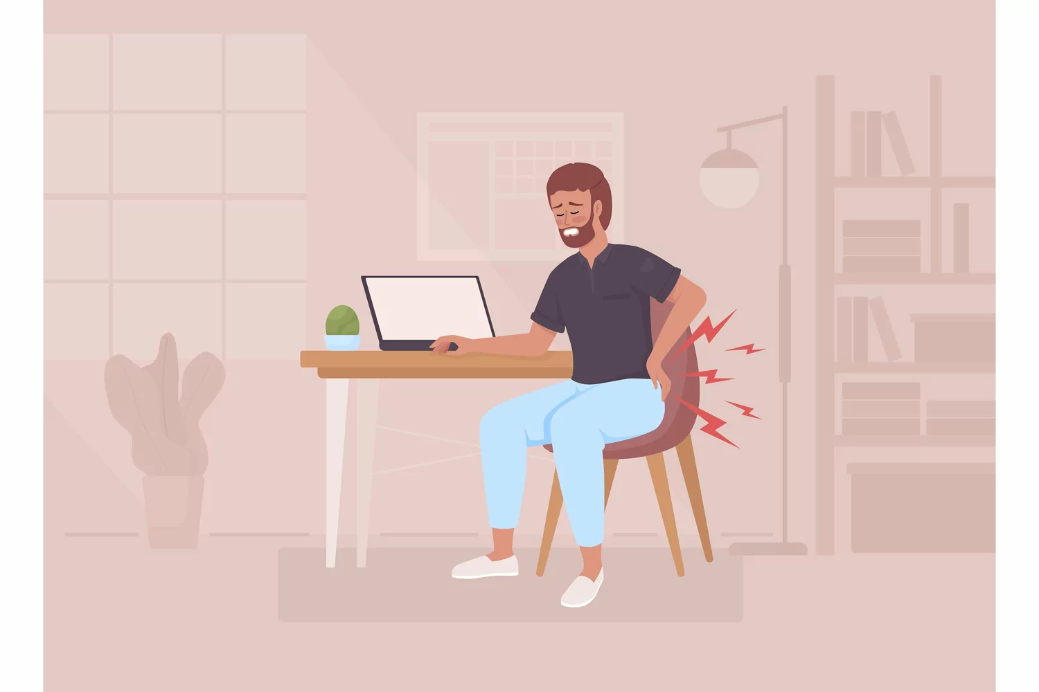 Back pain due to prolonged sitting flat vector illustration example image 1