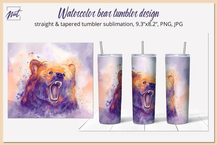 It's stylish tumbler sublimation design with bear head in watercolor technique (NON seamless).