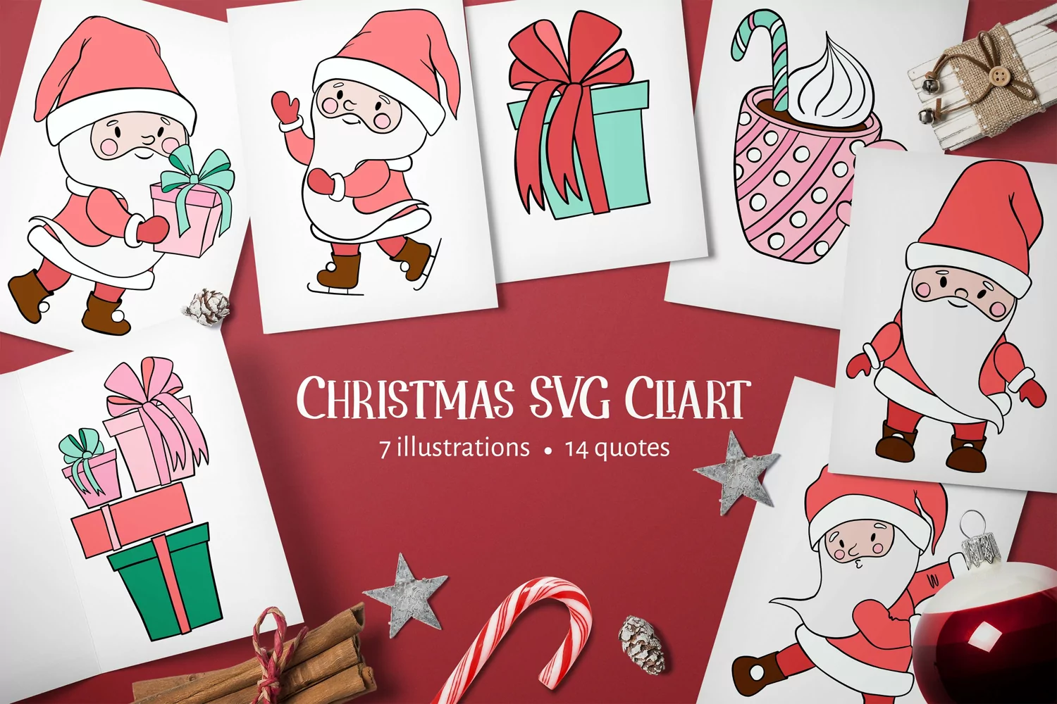 This bundle contains Christmas illustrations with Santa:
