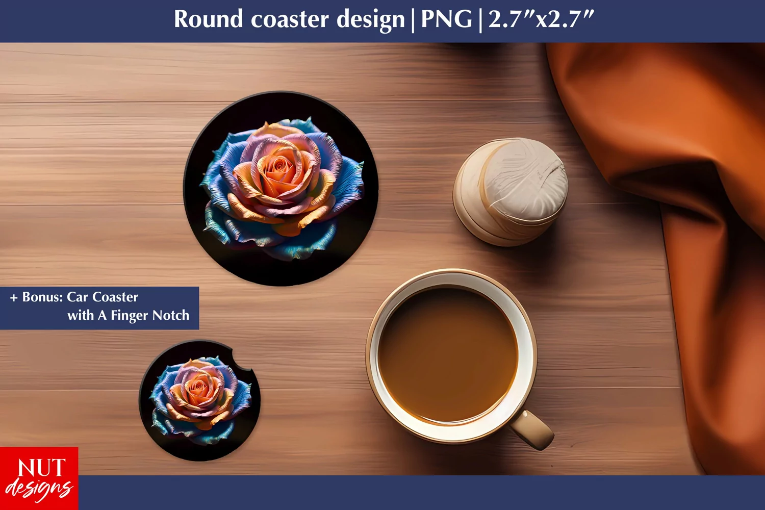 Floral Round coaster png, Colorful flower car coaster design example image 1