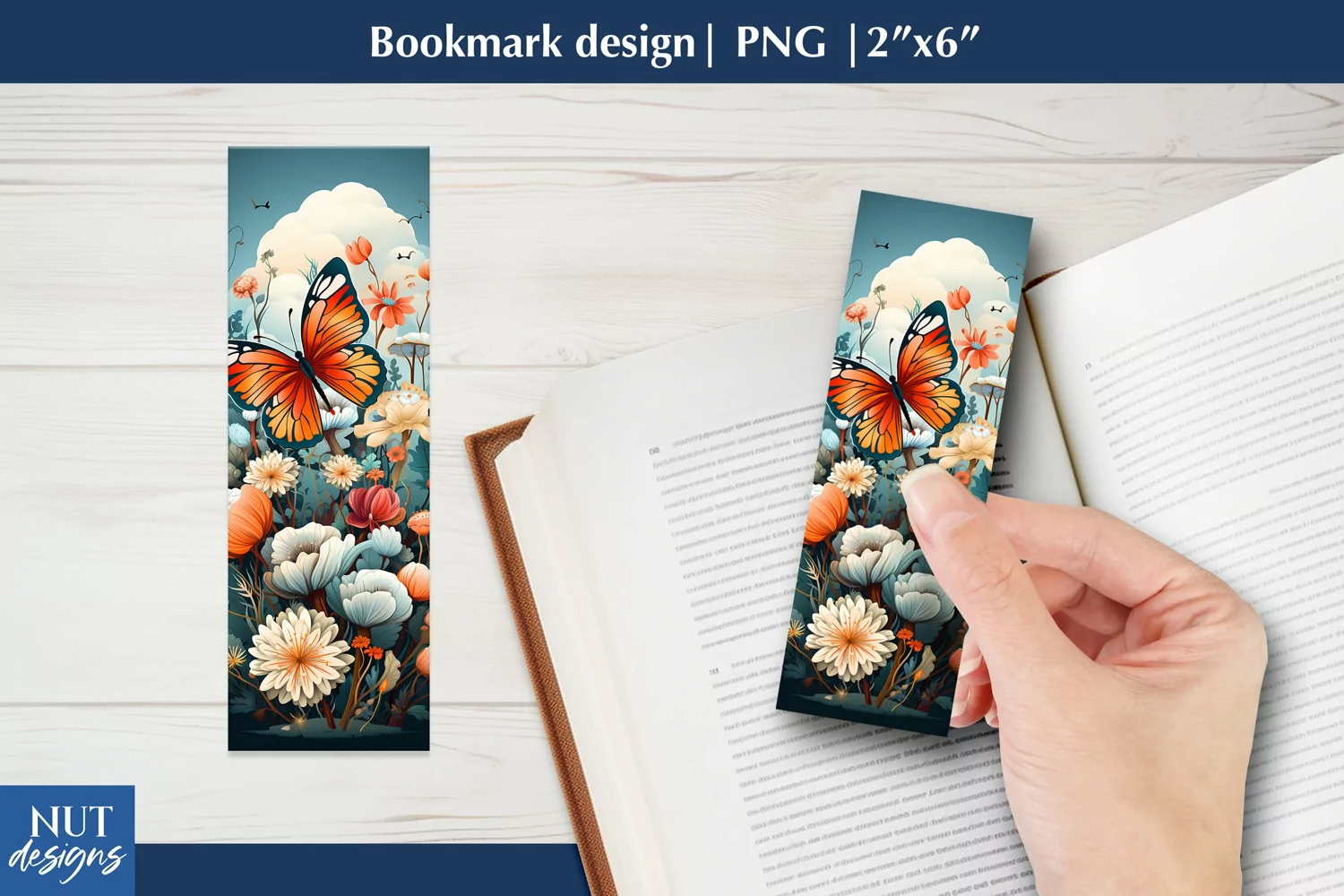 Summer floral bookmark, printable Butterfly book mark, book