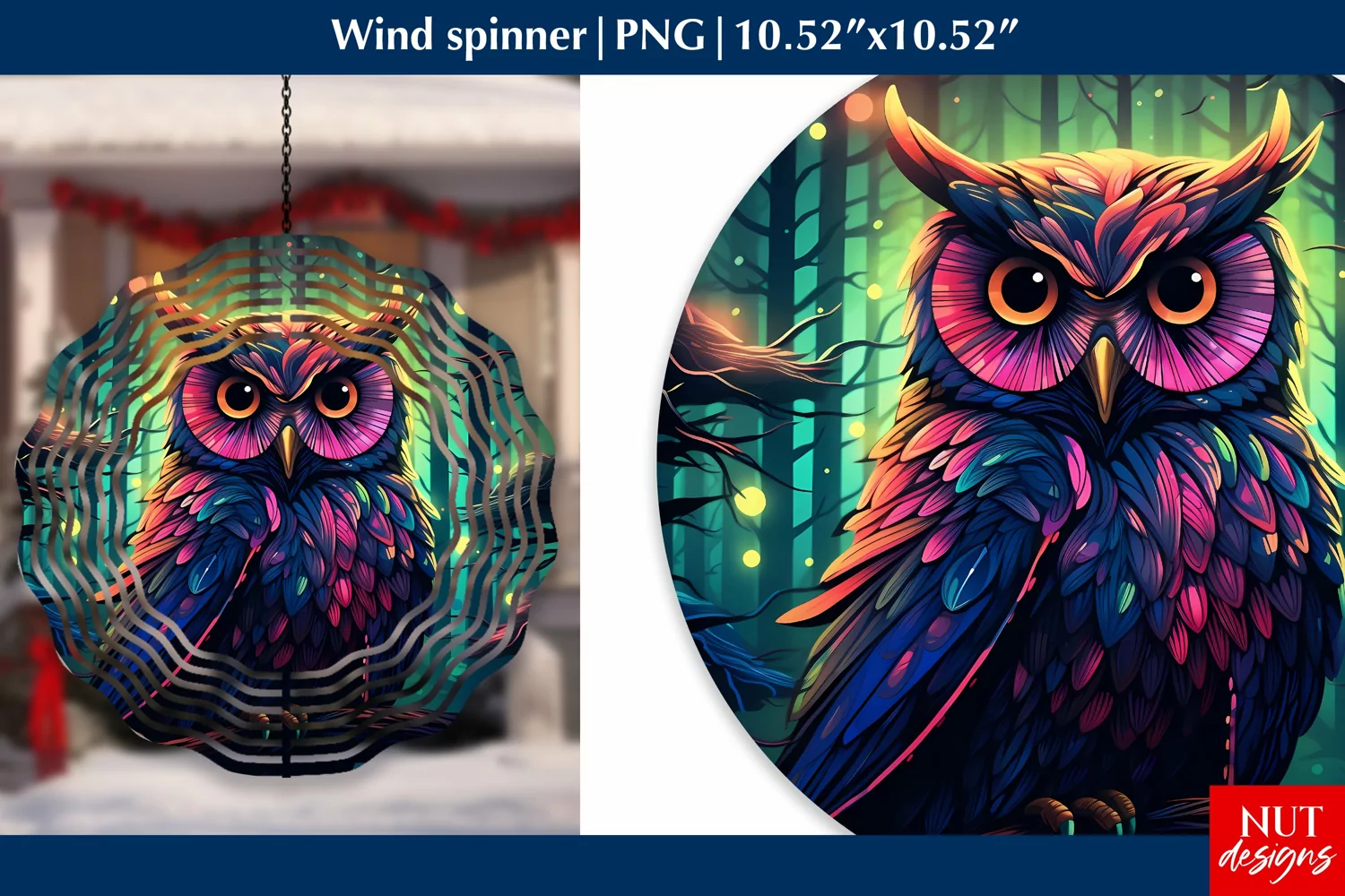 Owl wind spinner Owl round Halloween windspinner sublimation example image 1