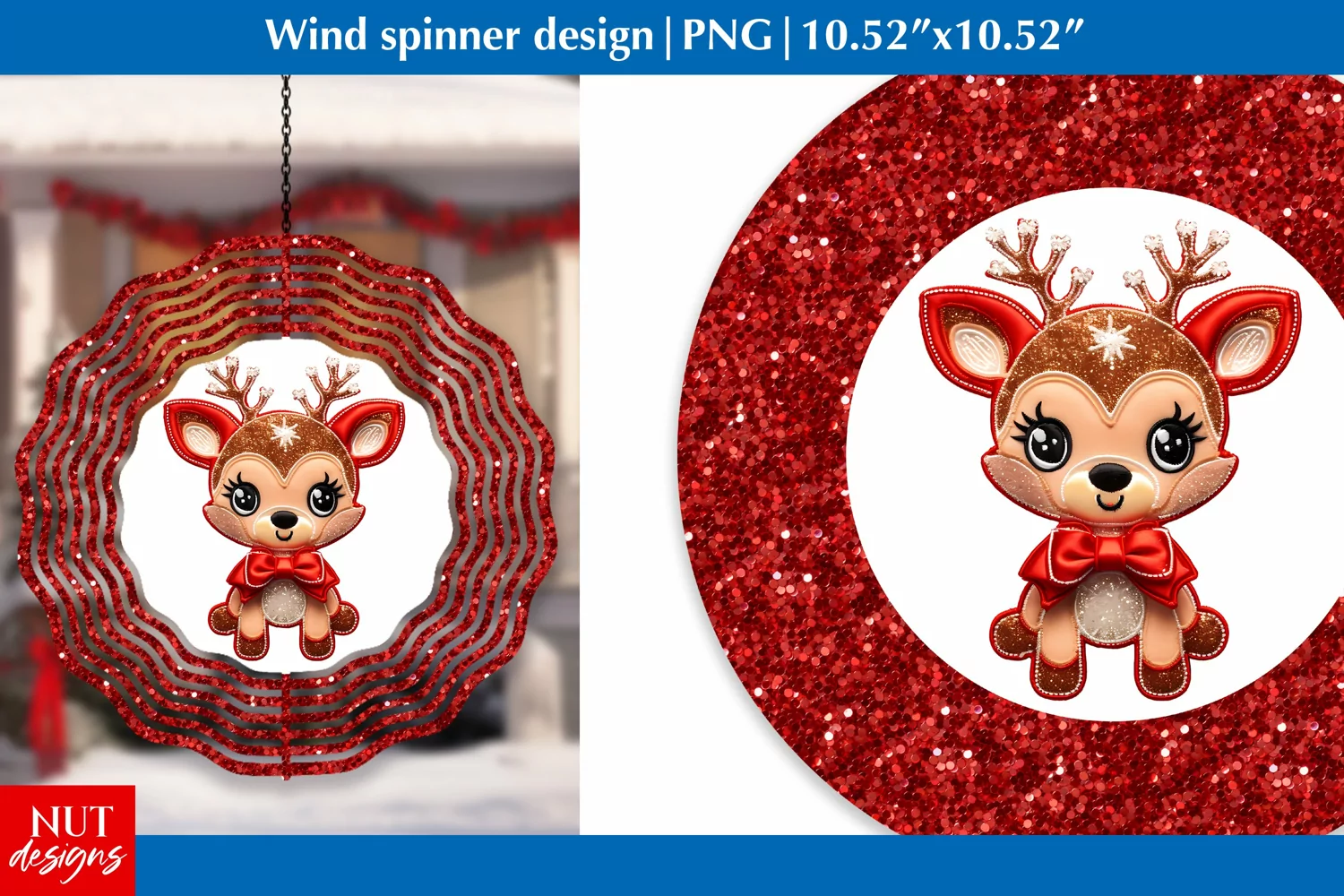 Red glitter baby deer wind spinner, Christmas wind spinner example image 1