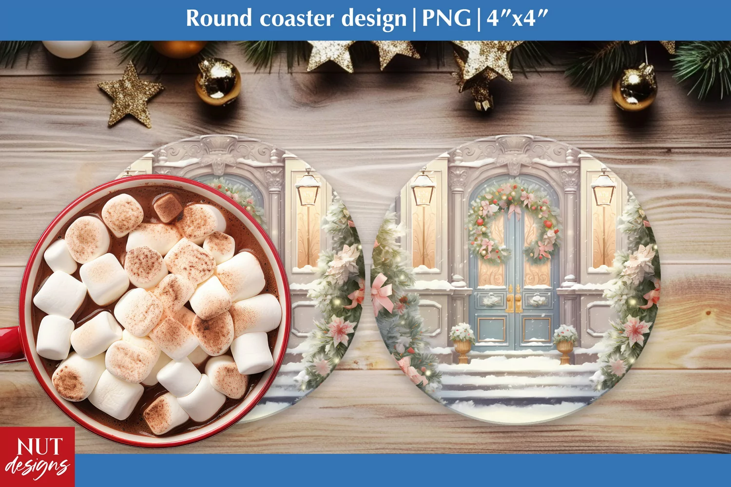 Christmas House Christmas Sublimation Christmas Animals Christmas Door Round Coaster Christmas Coaster Coaster Designs Coaster Sublimation Coaster Png Christmas Car Coasters