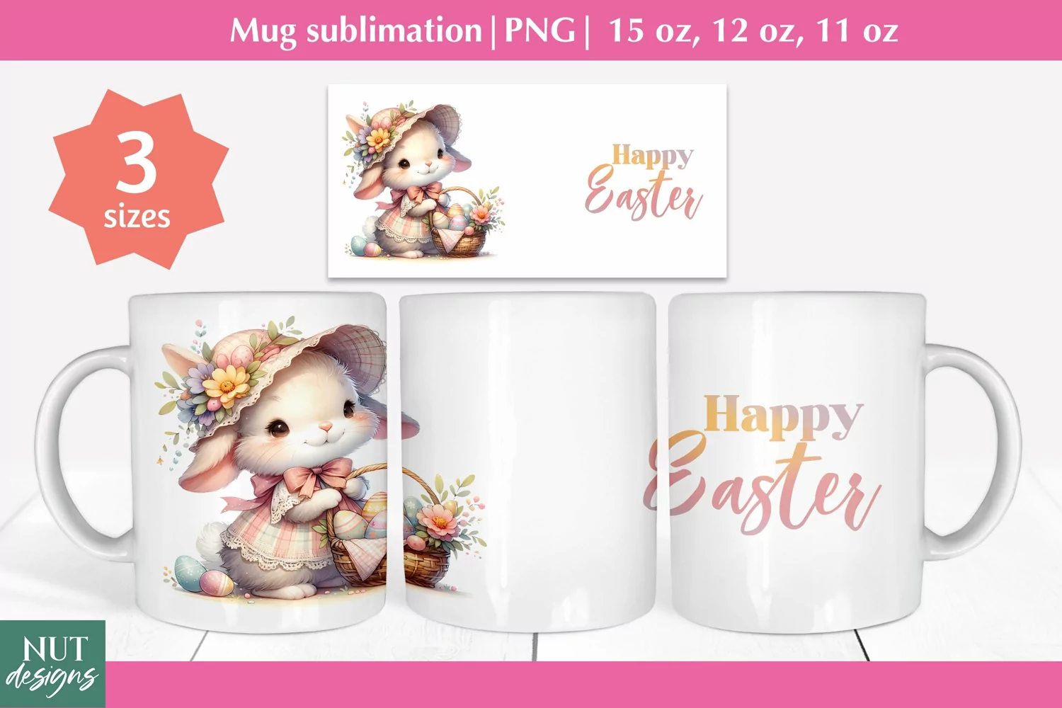 Easter mug wrap Cute Easter bunny Easter mug sublimation