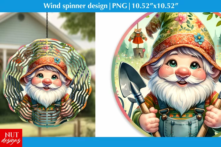 Gnome with garden tool Spring Gnome wind spinner sublimation
