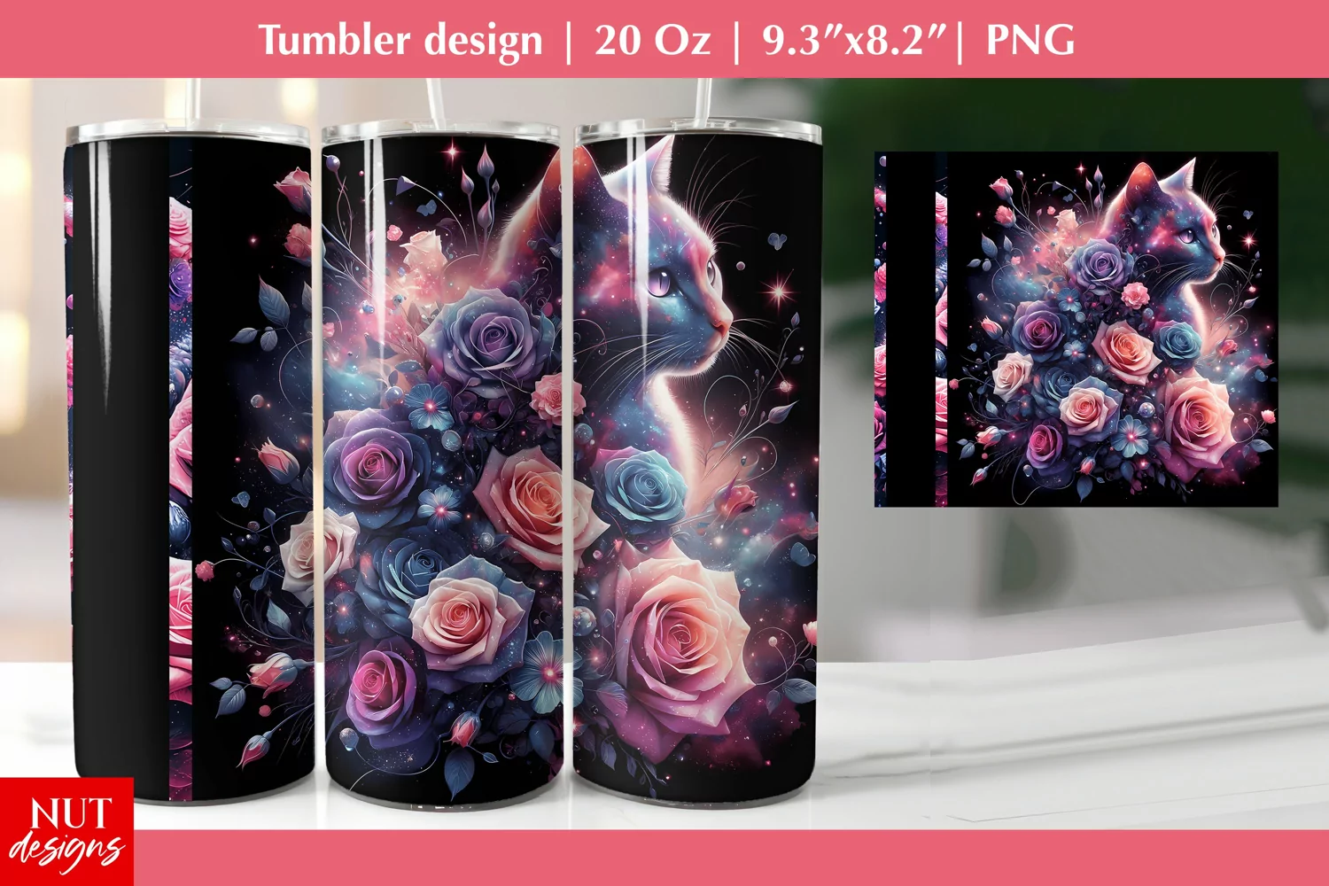 Floral Cat tumbler sublimation, Add Name tumbler for cat mom example image 1